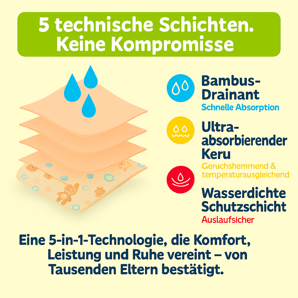 Mit Bambusfasern angereichert und gemeinsam mit Eltern entwickelt, bieten unsere Lernunterhosen höchsten Komfort und optimale Saugfähigkeit. Sie helfen eurem Kind, in nur drei Wochen von der Windel aufs Töpfchen umzusteigen.
